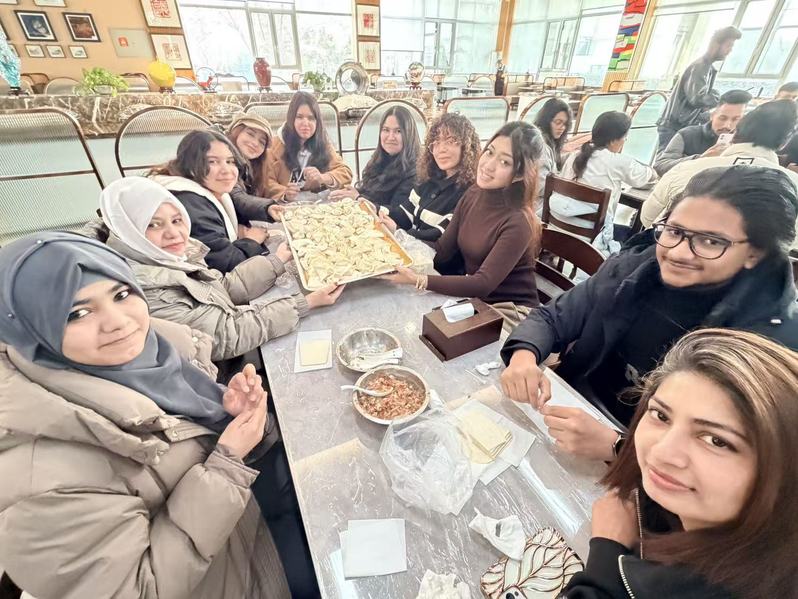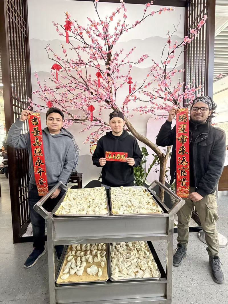 International students from more than a dozen countries, including Russia, Bangladesh, Kazakhstan, and Afghanistan, gathered together to learn how to make dumplings amid laughter and joy, welcoming the upcoming Year of the Horse.