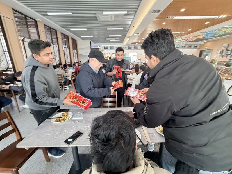 Amid the warm festive atmosphere, Zhang Zhaolu, Dean of the School of International Education, presented Spring Festival couplets and warm greetings to the international students, making them feel the warmth of home in a foreign country.